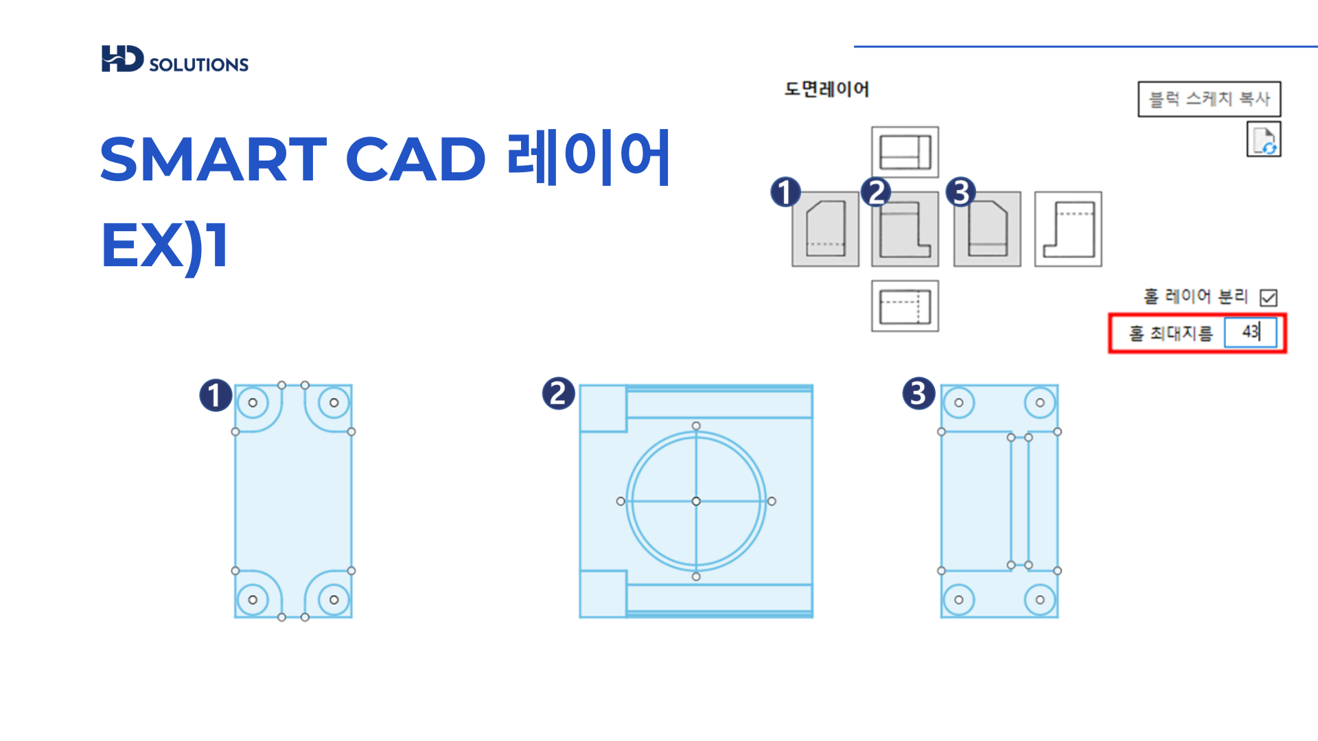2D 도면으로 투상 방향 별 레이어 분리 및 홀 리스트를 활용해 빠르게 모델링이 가능하도록 도와주는 제품입니다.